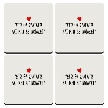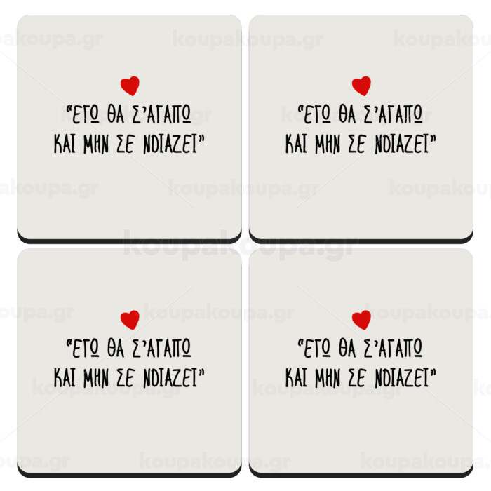 ΕΓΩ ΘΑ Σ’ΑΓΑΠΩ ΚΑΙ ΜΗΝ ΣΕ ΝΟΙΑΖΕΙ..., ΣΕΤ 4 Σουβέρ ξύλινα τετράγωνα (9cm)