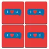 I Love You text message, ΣΕΤ 4 Σουβέρ ξύλινα τετράγωνα (9cm)