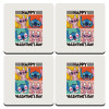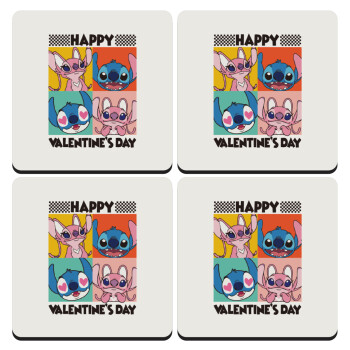 Lilo & Stitch Happy valentines day, ΣΕΤ 4 Σουβέρ ξύλινα τετράγωνα (9cm)