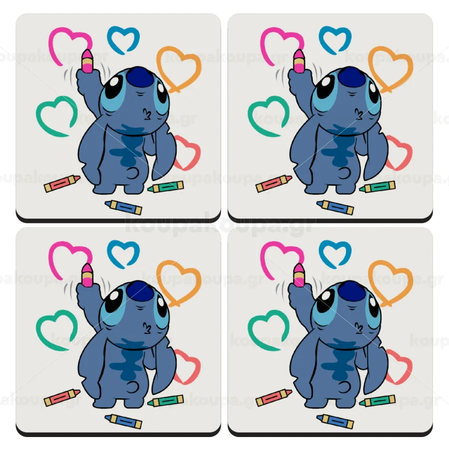 Lilo & Stitch painting, ΣΕΤ 4 Σουβέρ ξύλινα τετράγωνα (9cm)