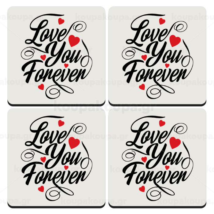 Love you forever, ΣΕΤ 4 Σουβέρ ξύλινα τετράγωνα (9cm)