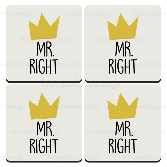 Mr right, ΣΕΤ 4 Σουβέρ ξύλινα τετράγωνα (9cm)