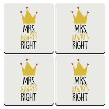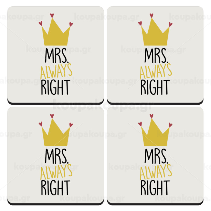 Mrs "Always" right, ΣΕΤ 4 Σουβέρ ξύλινα τετράγωνα (9cm)