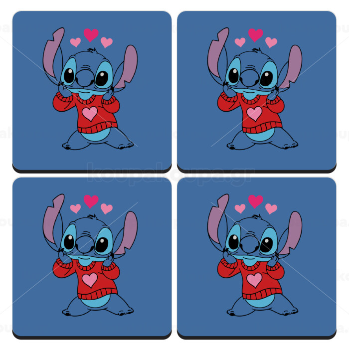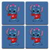 Stitch heart, ΣΕΤ 4 Σουβέρ ξύλινα τετράγωνα (9cm)