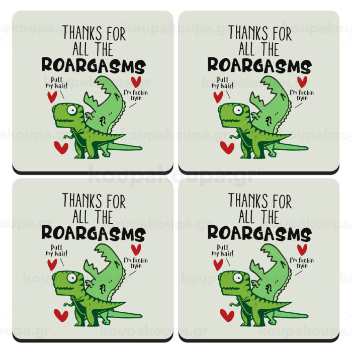 Thanks for all the ROARGASMS, ΣΕΤ 4 Σουβέρ ξύλινα τετράγωνα (9cm)