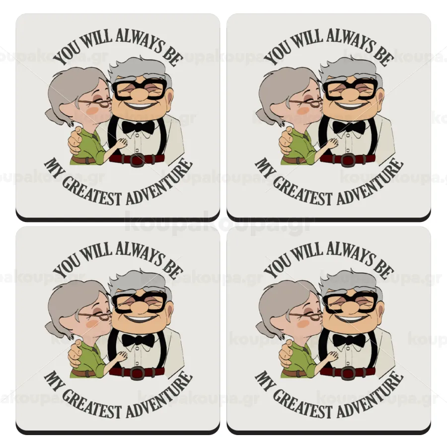 UP, YOU WILL ALWAYS BE MY GREATEST ADVENTURE, ΣΕΤ 4 Σουβέρ ξύλινα τετράγωνα (9cm)