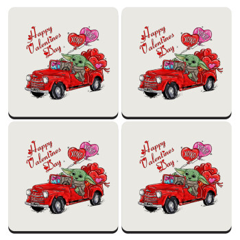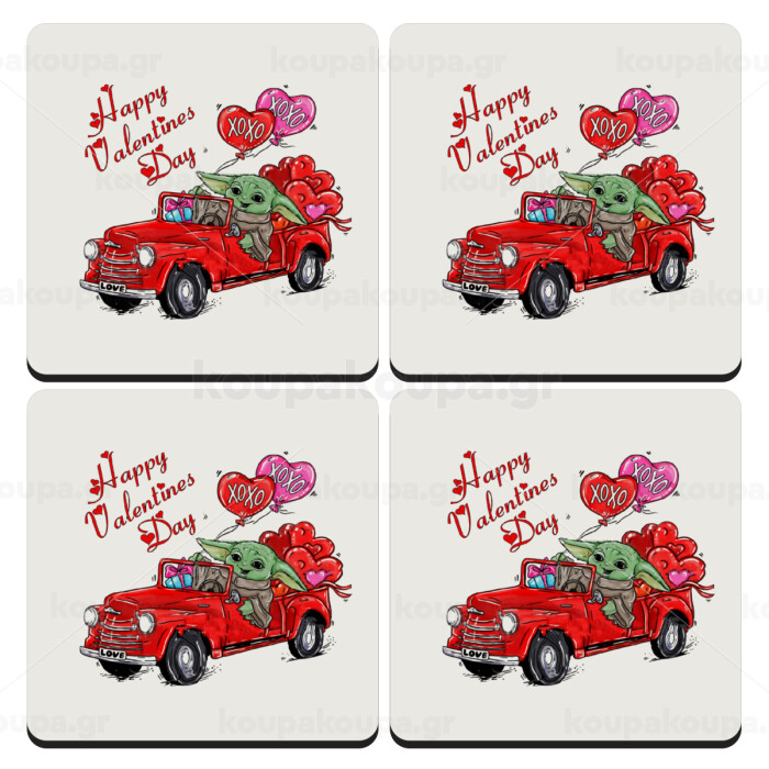 Yoda, happy valentines day (xoxo), ΣΕΤ 4 Σουβέρ ξύλινα τετράγωνα (9cm)