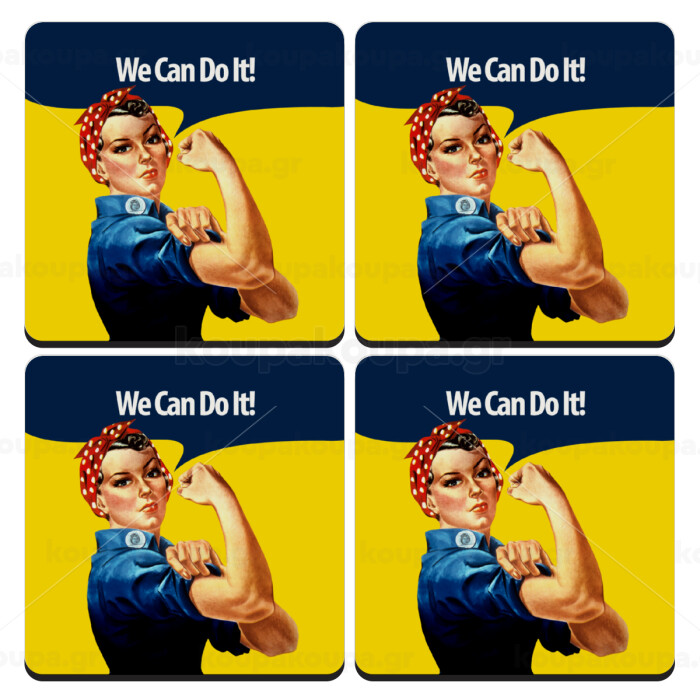 Rosie we can do it!, ΣΕΤ 4 Σουβέρ ξύλινα τετράγωνα (9cm)