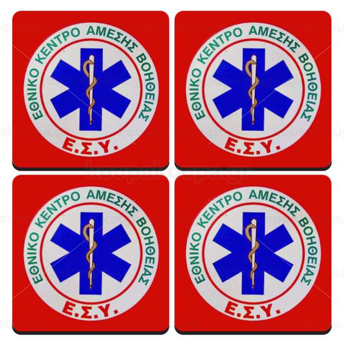 ΕΚΑΒ, ΣΕΤ 4 Σουβέρ ξύλινα τετράγωνα (9cm)