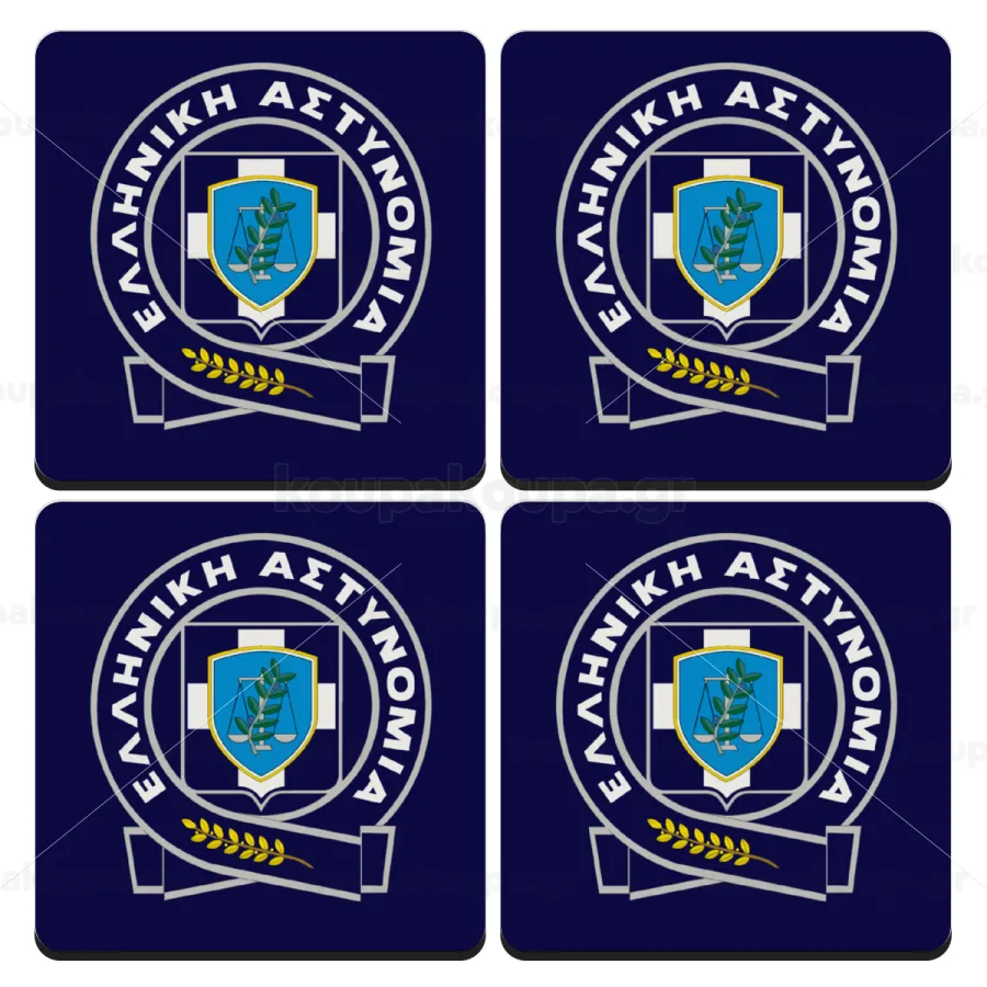 Ελληνική Αστυνομία, ΣΕΤ 4 Σουβέρ ξύλινα τετράγωνα (9cm)
