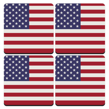 USA Flag, ΣΕΤ 4 Σουβέρ ξύλινα τετράγωνα (9cm)