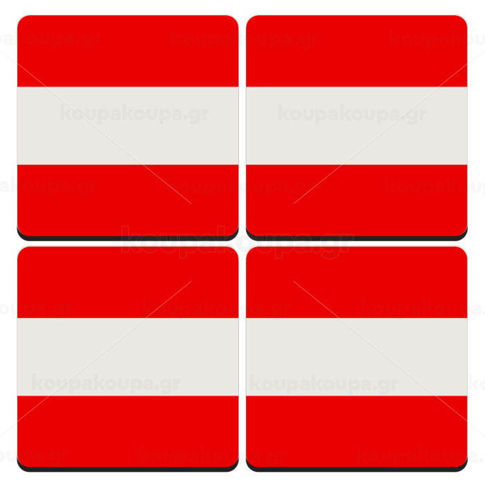 Austria flag, ΣΕΤ 4 Σουβέρ ξύλινα τετράγωνα (9cm)