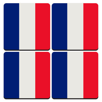 France flag, ΣΕΤ 4 Σουβέρ ξύλινα τετράγωνα (9cm)