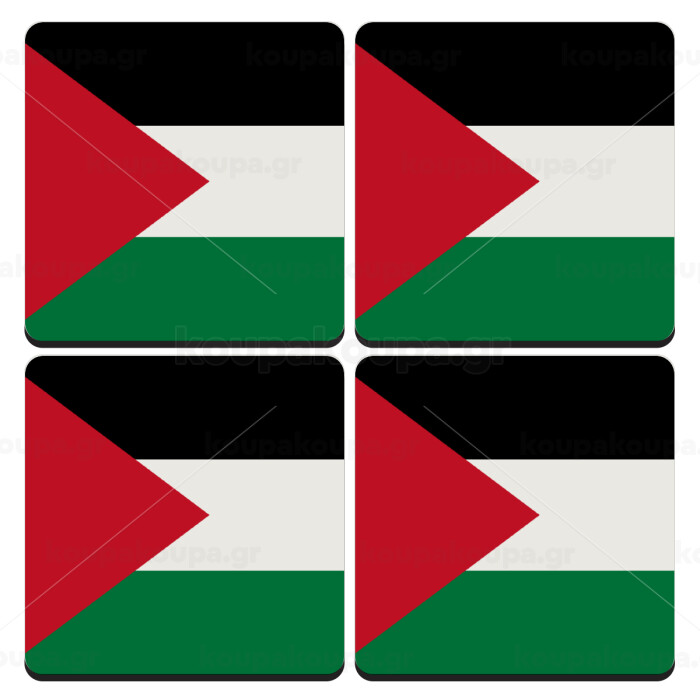 Palestine Flag, ΣΕΤ 4 Σουβέρ ξύλινα τετράγωνα (9cm)