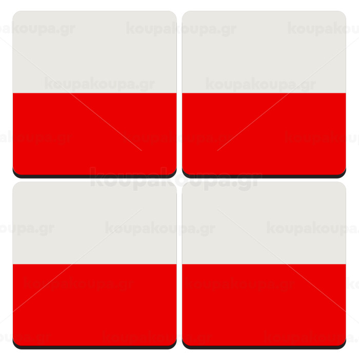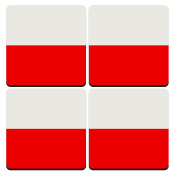 Poland flag, ΣΕΤ 4 Σουβέρ ξύλινα τετράγωνα (9cm)