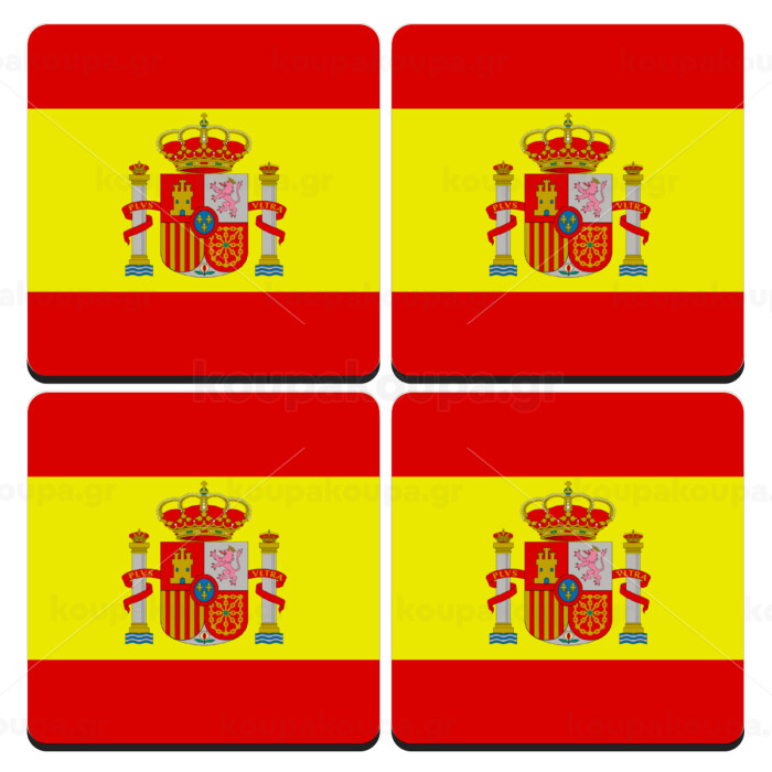 Spain flag, ΣΕΤ 4 Σουβέρ ξύλινα τετράγωνα (9cm)