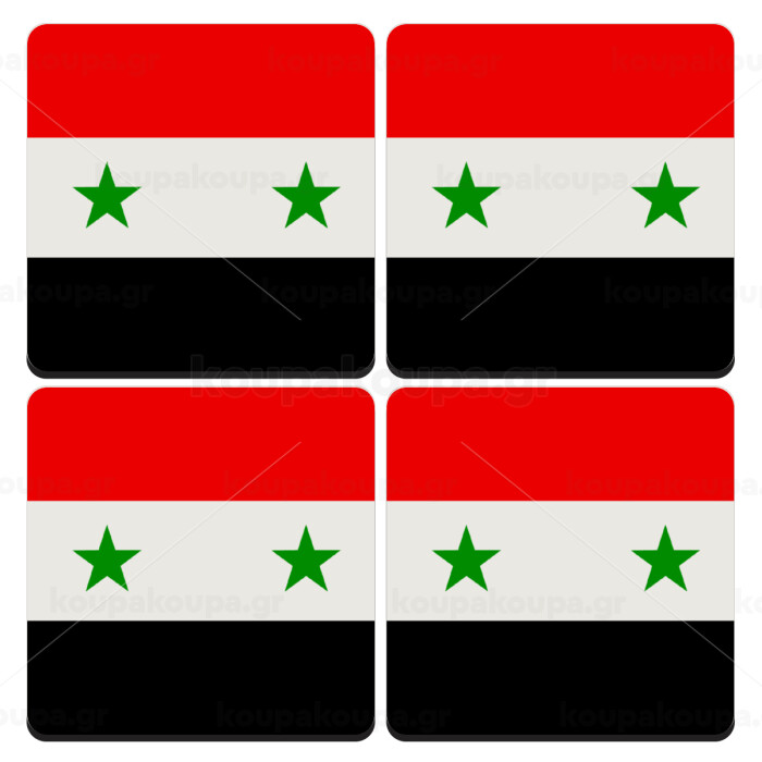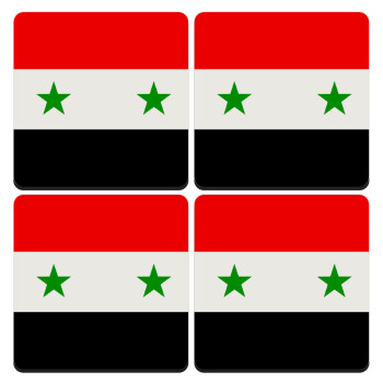 Syria flag, ΣΕΤ 4 Σουβέρ ξύλινα τετράγωνα (9cm)