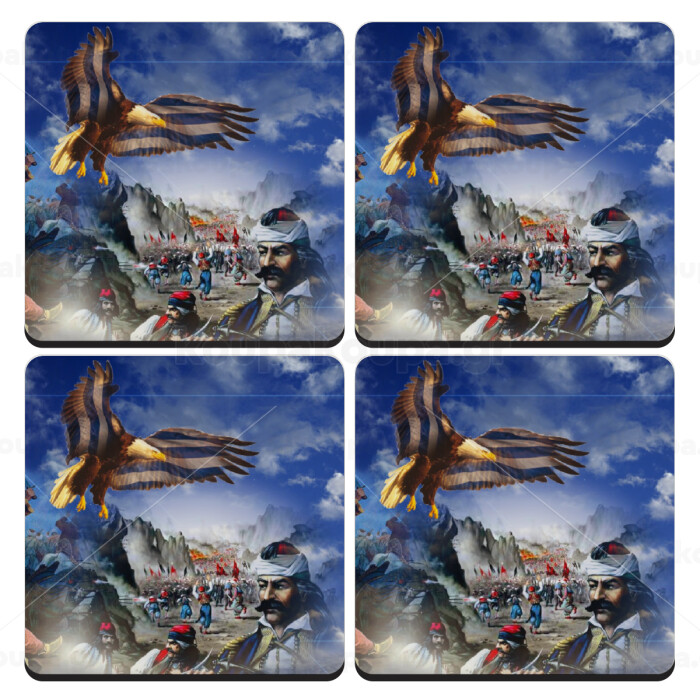 25η Μαρτίου 1821 Εθνική Επέτειος, ΣΕΤ 4 Σουβέρ ξύλινα τετράγωνα (9cm)