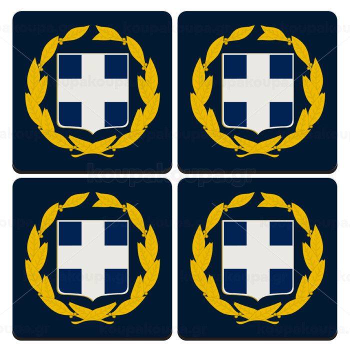 Hellas Εθνόσημο, ΣΕΤ 4 Σουβέρ ξύλινα τετράγωνα (9cm)