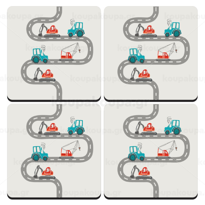 excavator along road, ΣΕΤ 4 Σουβέρ ξύλινα τετράγωνα (9cm)