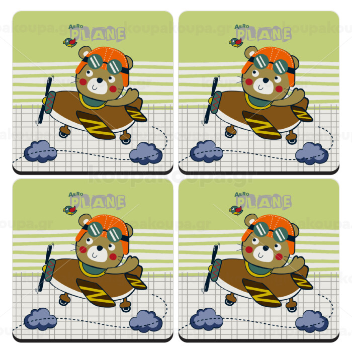 Kids Plane, ΣΕΤ 4 Σουβέρ ξύλινα τετράγωνα (9cm)