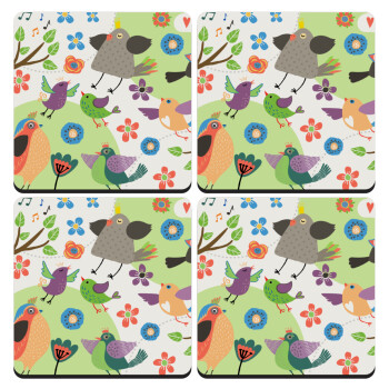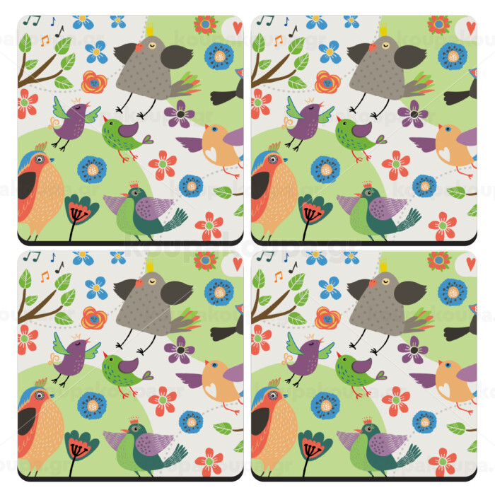 τα πουλάκια, ΣΕΤ 4 Σουβέρ ξύλινα τετράγωνα (9cm)