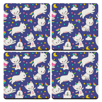 Cats unicorns, ΣΕΤ 4 Σουβέρ ξύλινα τετράγωνα (9cm)
