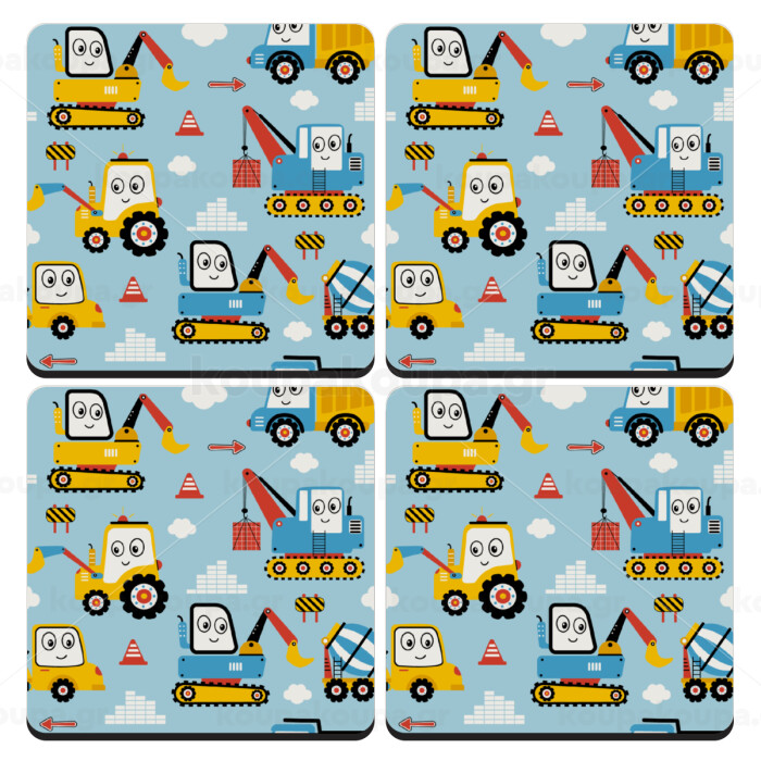 Hand drawing building truck, ΣΕΤ 4 Σουβέρ ξύλινα τετράγωνα (9cm)