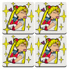 Sailor Moon, ΣΕΤ 4 Σουβέρ ξύλινα τετράγωνα (9cm)