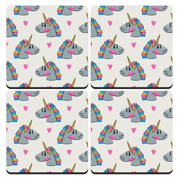 Unicorn, ΣΕΤ 4 Σουβέρ ξύλινα τετράγωνα (9cm)