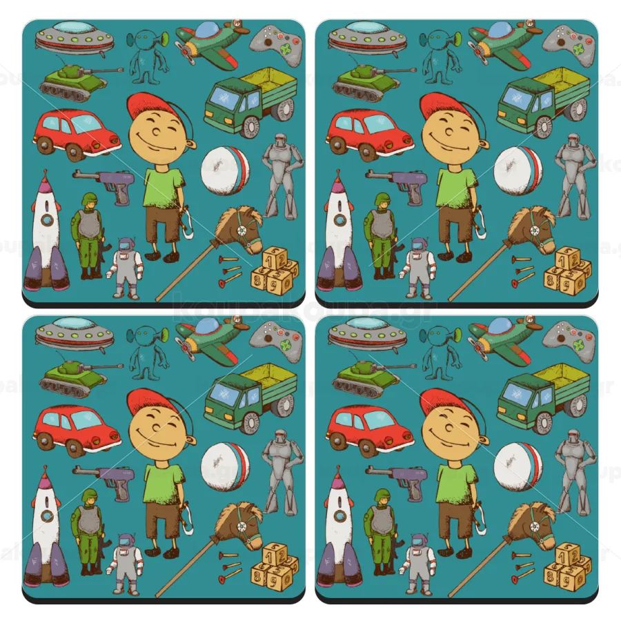 Toys Boy, ΣΕΤ 4 Σουβέρ ξύλινα τετράγωνα (9cm)