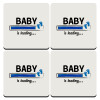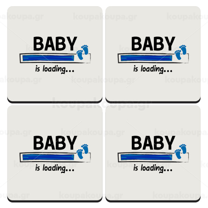 Baby is Loading BOY, ΣΕΤ 4 Σουβέρ ξύλινα τετράγωνα (9cm)