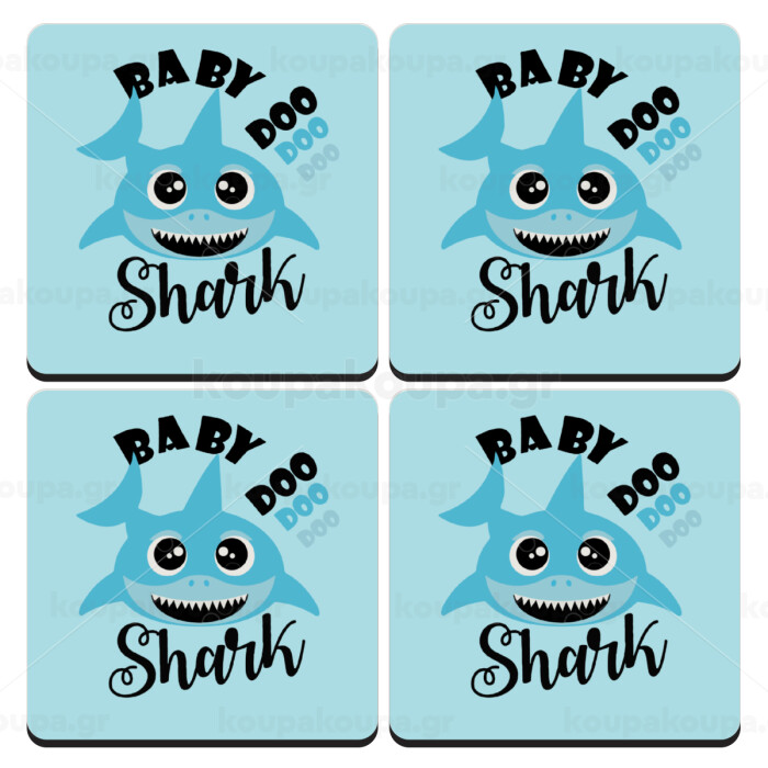 Baby Shark (boy), ΣΕΤ 4 Σουβέρ ξύλινα τετράγωνα (9cm)