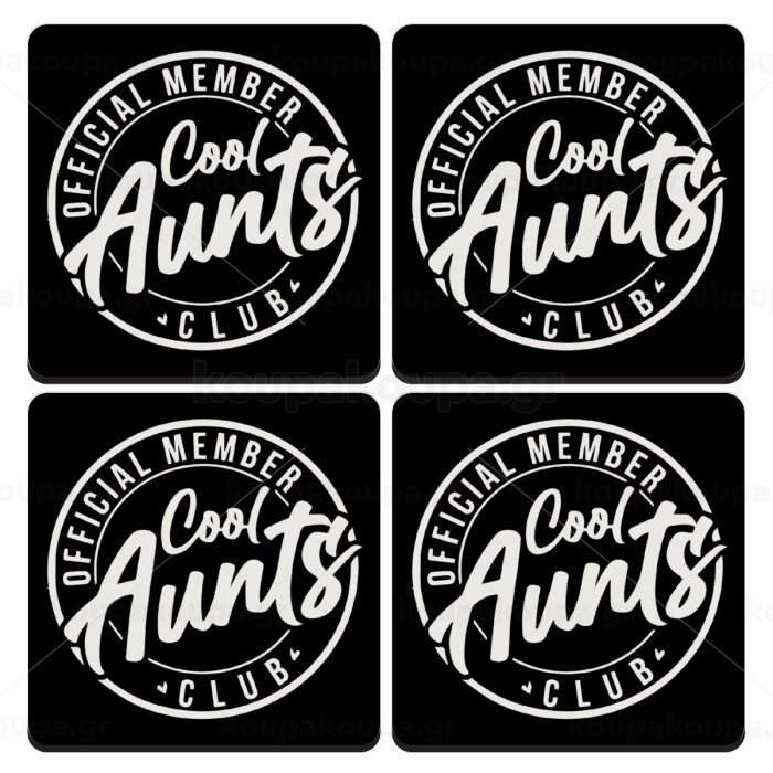 Cool Aunts club, ΣΕΤ 4 Σουβέρ ξύλινα τετράγωνα (9cm)