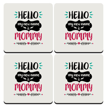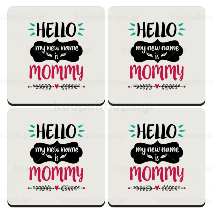 Hello, my new name is Mommy, ΣΕΤ 4 Σουβέρ ξύλινα τετράγωνα (9cm)