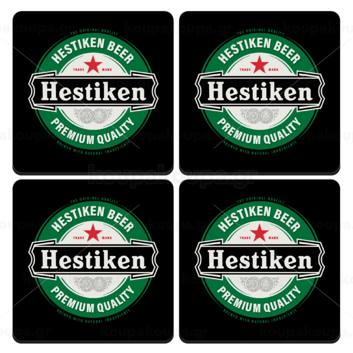 Hestiken Beer, ΣΕΤ 4 Σουβέρ ξύλινα τετράγωνα (9cm)