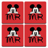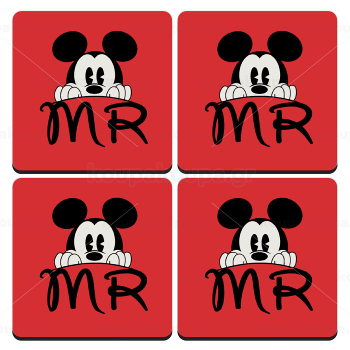 Mikey Mr, ΣΕΤ 4 Σουβέρ ξύλινα τετράγωνα (9cm)