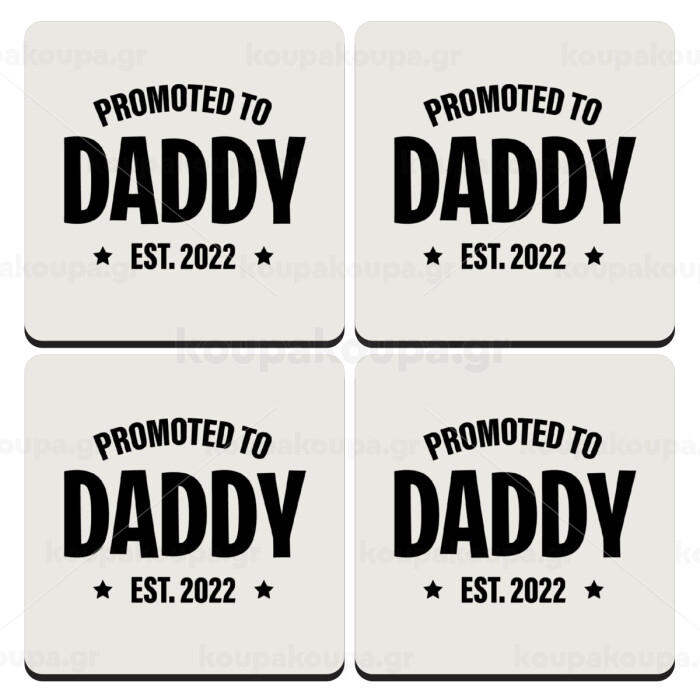 Promoted to Daddy, ΣΕΤ 4 Σουβέρ ξύλινα τετράγωνα (9cm)