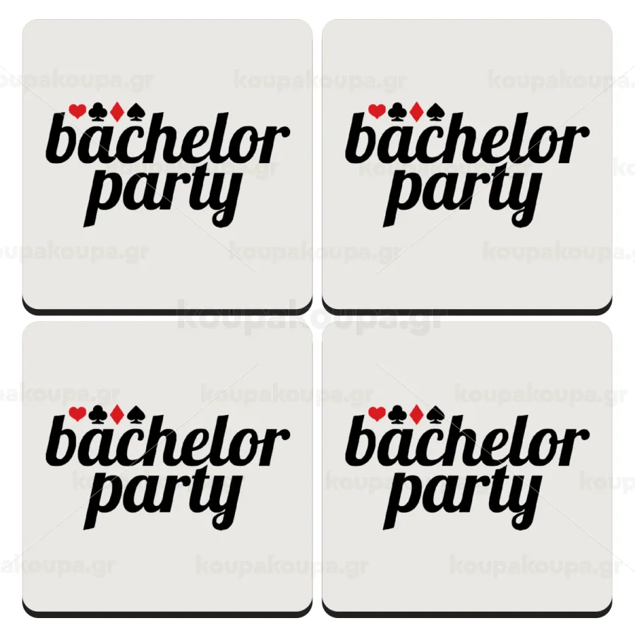 Bachelor party, ΣΕΤ 4 Σουβέρ ξύλινα τετράγωνα (9cm)