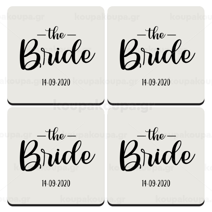 Groom & Bride (Bride), ΣΕΤ 4 Σουβέρ ξύλινα τετράγωνα (9cm)