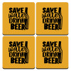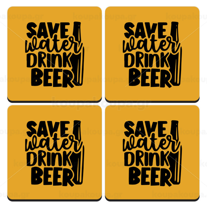 Save Water, Drink BEER, ΣΕΤ 4 Σουβέρ ξύλινα τετράγωνα (9cm)