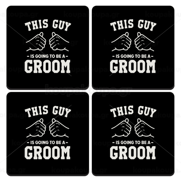 This Guy is going to be a GROOM, ΣΕΤ 4 Σουβέρ ξύλινα τετράγωνα (9cm)