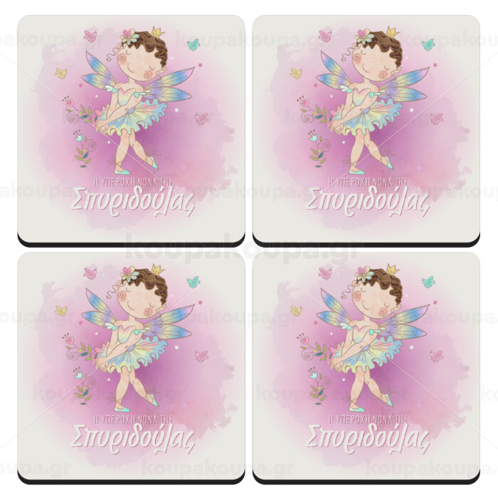 Η νονά μου, Νεράϊδα, ΣΕΤ 4 Σουβέρ ξύλινα τετράγωνα (9cm)