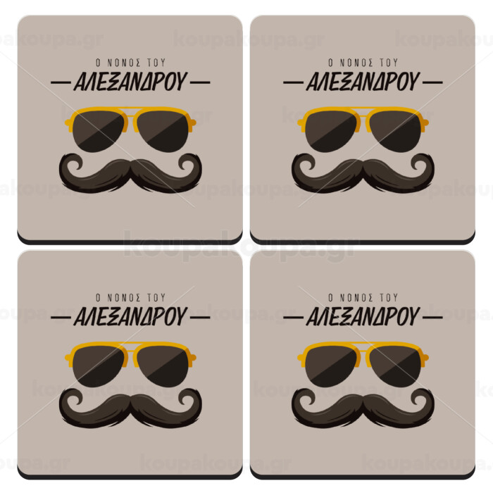 Ο νονός μου, μουστάκι με γυαλιά, ΣΕΤ 4 Σουβέρ ξύλινα τετράγωνα (9cm)