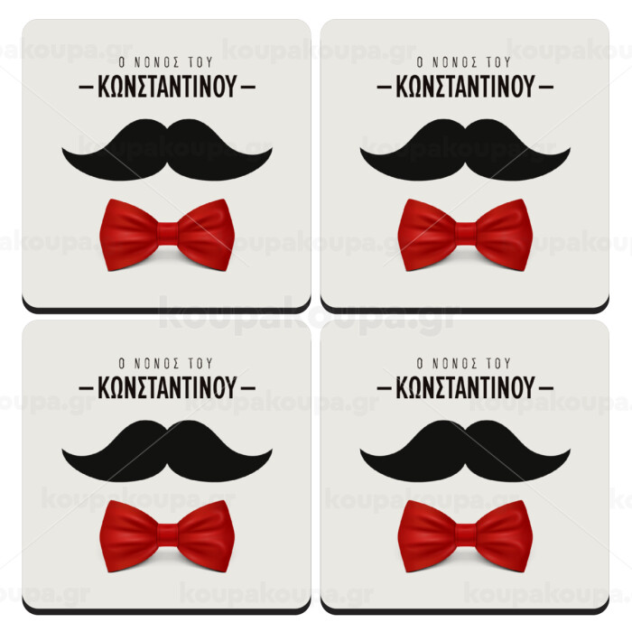 Ο νονός μου, μουστάκι με παπιγιόν, ΣΕΤ 4 Σουβέρ ξύλινα τετράγωνα (9cm)
