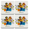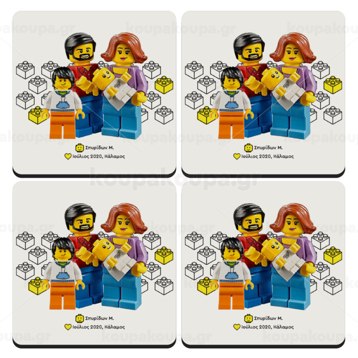 Τύπου Lego family, ΣΕΤ 4 Σουβέρ ξύλινα τετράγωνα (9cm)