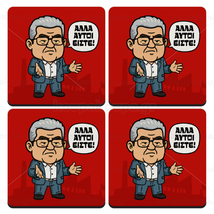 Κουτσούμπας, "Αλλά αυτοί είστε!", ΣΕΤ 4 Σουβέρ ξύλινα τετράγωνα (9cm)