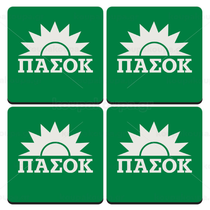 PASOK Green/White, ΣΕΤ 4 Σουβέρ ξύλινα τετράγωνα (9cm)
