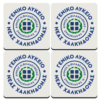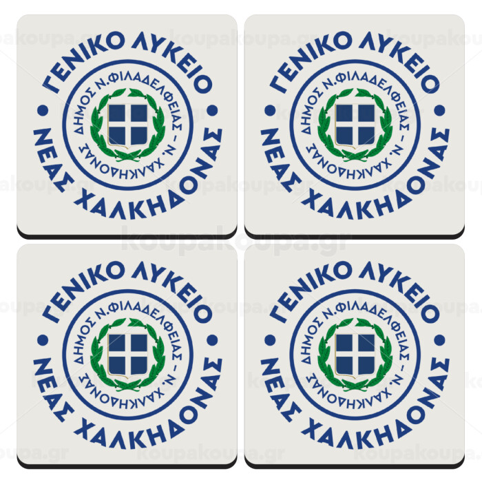 Έμβλημα Σχολικό με δάφνες, ΣΕΤ 4 Σουβέρ ξύλινα τετράγωνα (9cm)