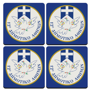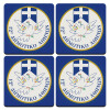 Σχολικό σήμα περιστέρι με δάφνες, ΣΕΤ 4 Σουβέρ ξύλινα τετράγωνα (9cm)